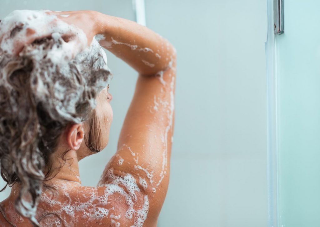 Sous la douche, les résidus de shampooing qui coulent le long du dos peuvent obstruer les pores, surtout si le produit n’est pas bien rincé.